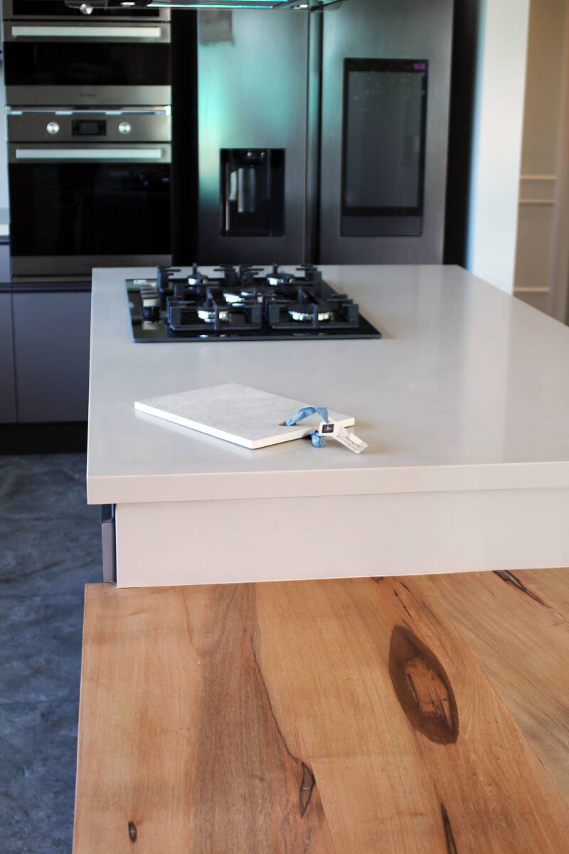 Esta vez se usó para la cocina tanto en la isla, incorporada con los anafes, como en la mesada donde se encuentra la bacha.
